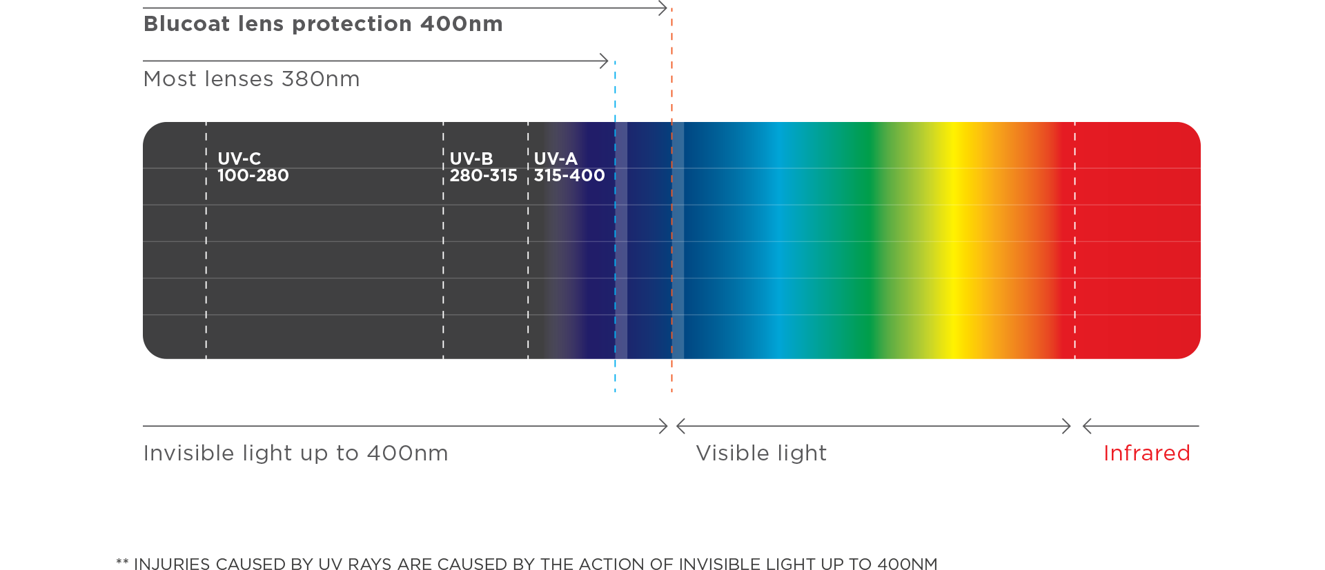 Incorporated protection against harmful ultraviolet light, and from blue light devices such as smart phones, TV screens, laptops and tablets |
